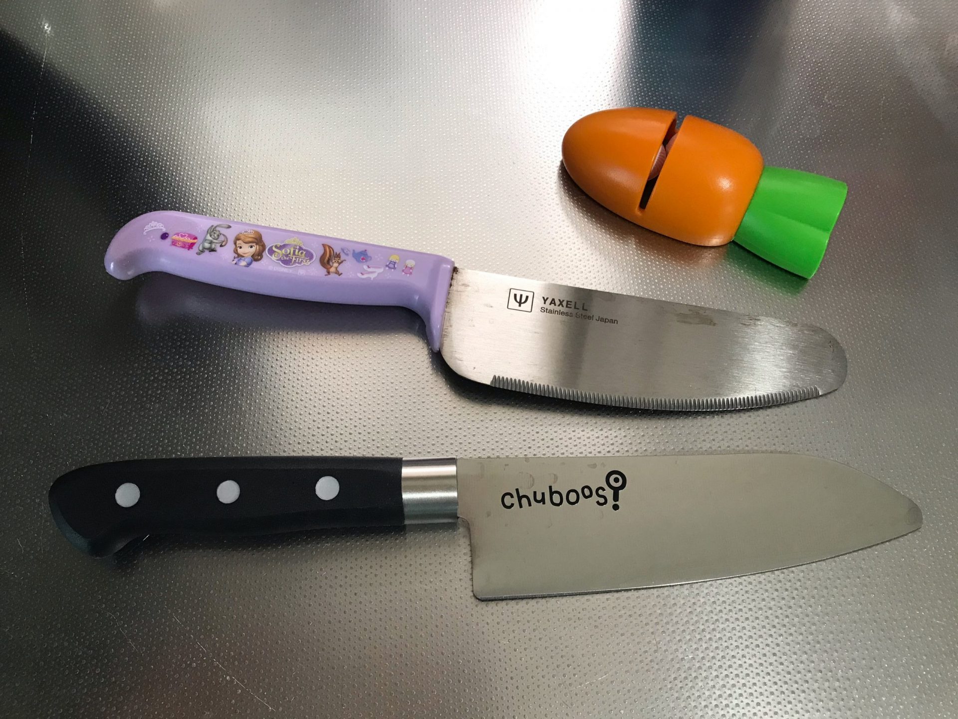 ちょっと試しにやらせてみると、結構切れるし、「野菜切れるから指も切れる。危ない」というのは理解したようです。